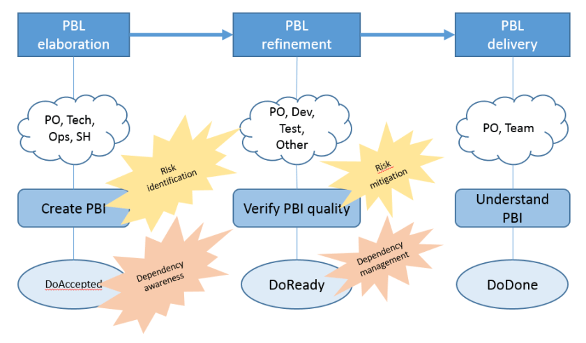 The Product Backlog (PBL) is an artifact, a collection of items (PBI’s) that describe the product value proposition and capabilities. It consists of large items that represent an idea (epics), other items that make the idea work (features) and value items that enable these to function (user stories).