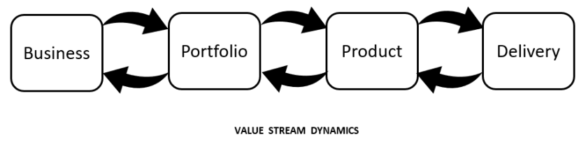 Business as well as technical initiatives flow through the value streams and the respective workflows in order to generate value outcomes.