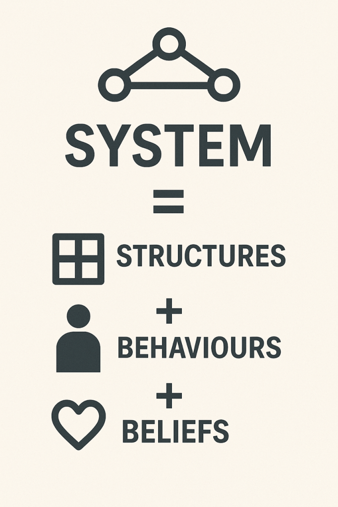 When organizations embark on their agile transformation journey, they often focus on adopting new practices, frameworks, and ceremonies. However, the most successful transformations recognize a fundamental truth: System = Structures + Behaviors + Beliefs.